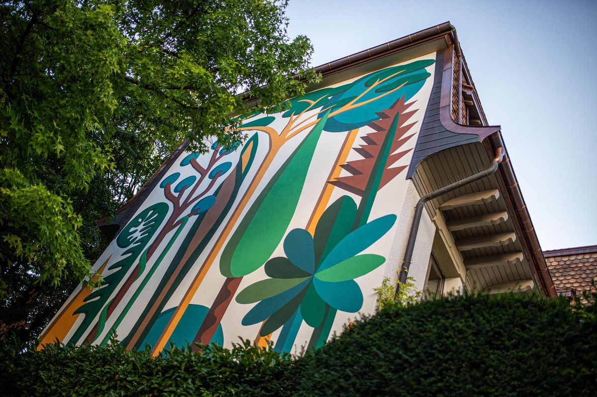 Cet hiver, l’artiste genevoise Marie van Berchem a habillé une maison de l’avenue de Saint-Paul d’une grande fresque végétale.
