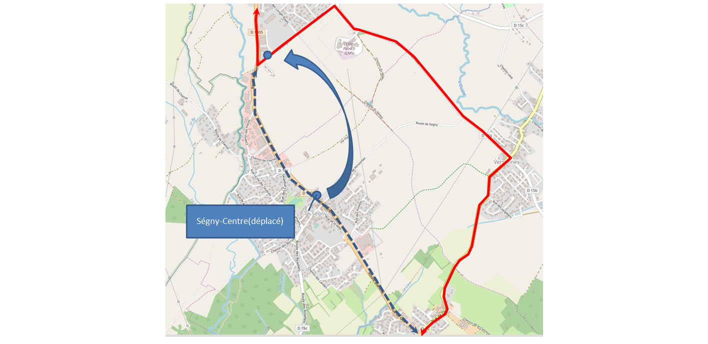 Arrêts Segny-Centre déplacé –> Route de la Bergerie.