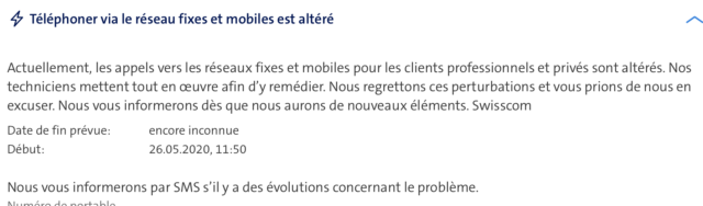 Une analyse de la situation exacte est actuellement en cours précise une porte-parole de Swisscom. Sur le site internet de l’opérateur un message confirme ce nouveau dysfonctionnement.