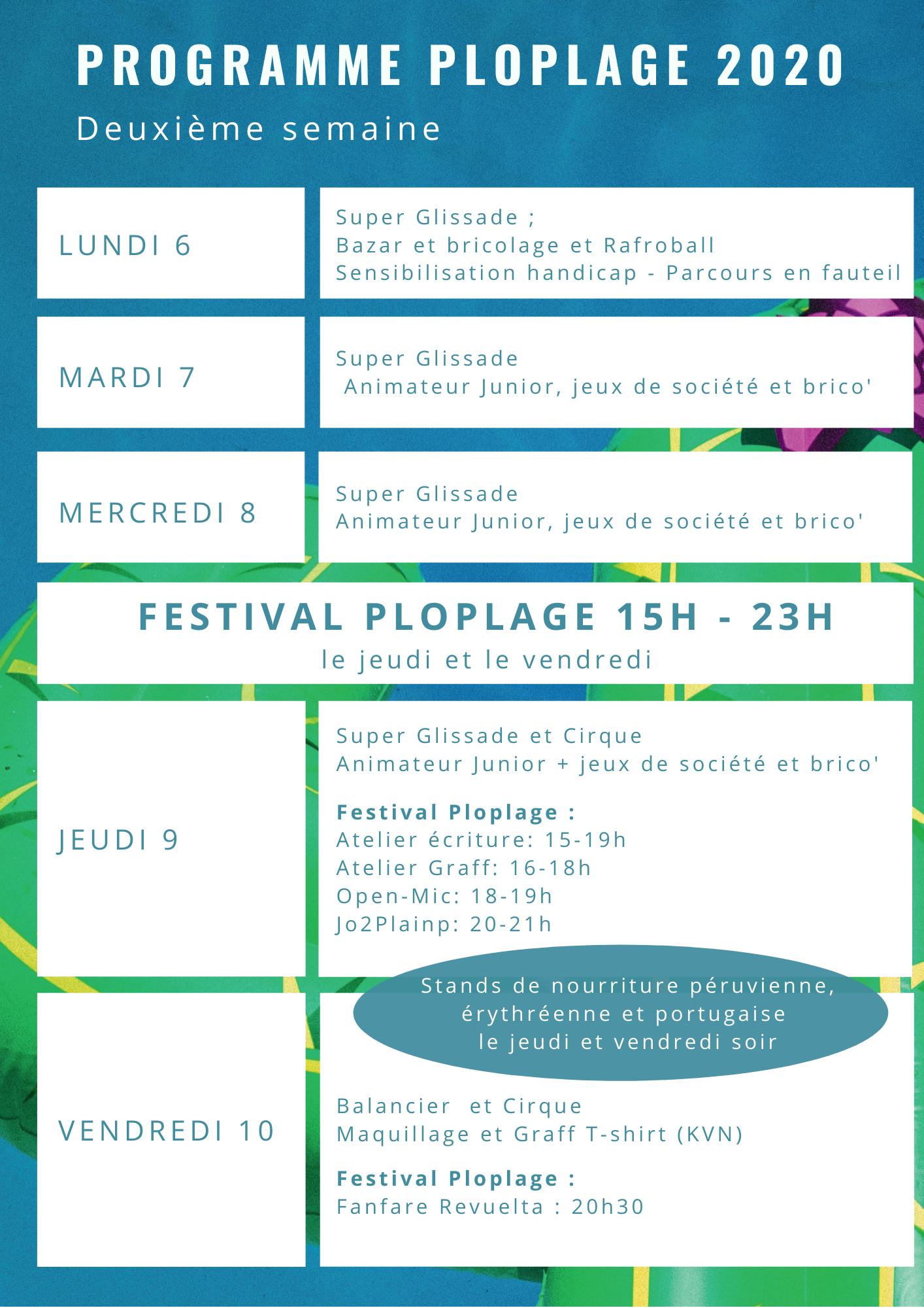 Découvrez le programme de Ploplage 2020 :