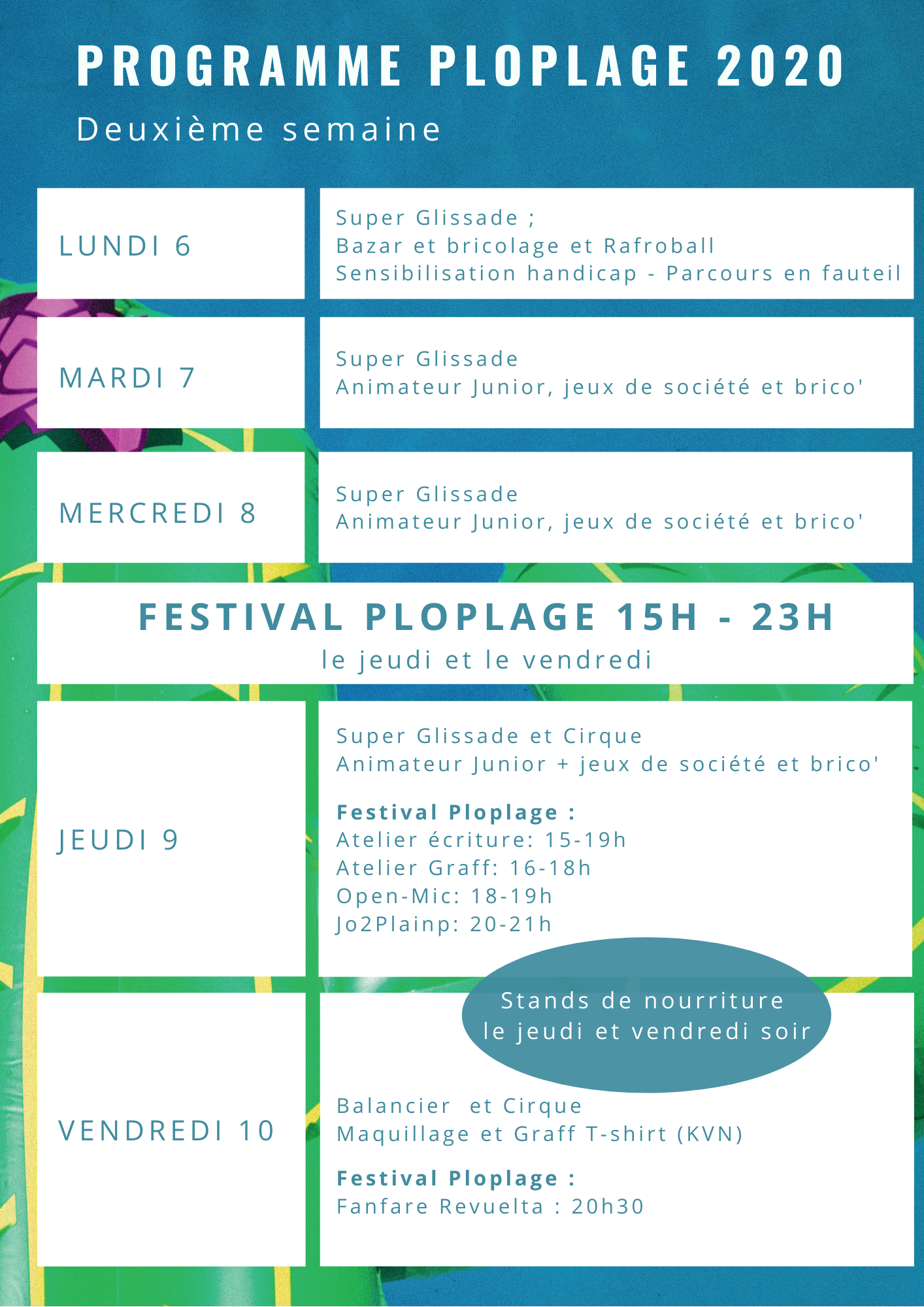 Buvette et animations estivales du 29 juin au 10 juillet