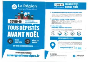 La région Auvergne Rhône-Alpes organise une campagne massive de dépistage du 16 au 23 décembre 2020 : tests gratuits, résultat rapide :
